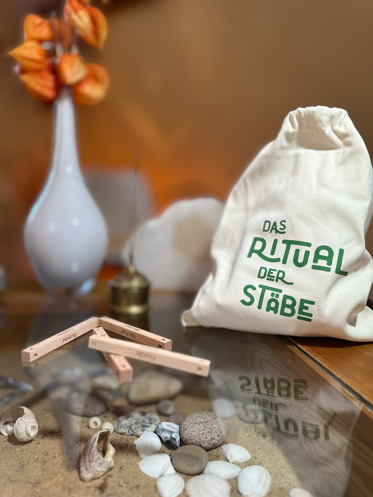 Ein ausführliches Begleitbuch mit Erklärungen, Reflexionsfragen und praktischen Übungen sowie ein Baumwollbeutel zur sicheren Aufbewahrung und intuitiven Auswahl der Stäbe unterstützt dich dabei. Das Ritual der Stäbe ist ideal für Einzelpersonen, Coaches und Trainer, die wirksam und nachhaltig Veränderungen unterstützen möchten.